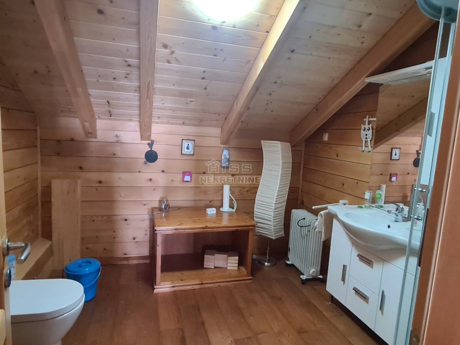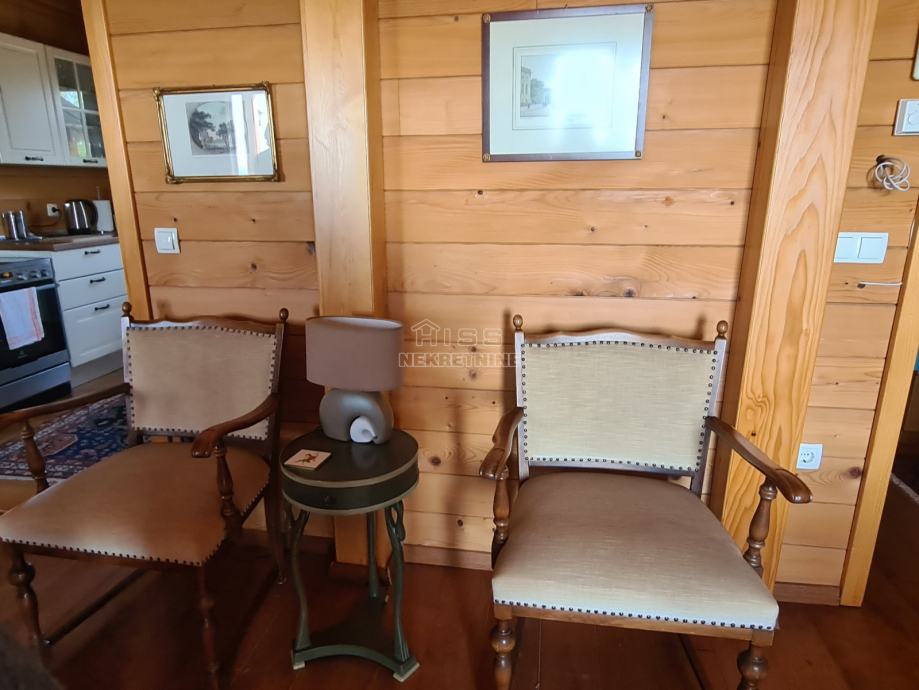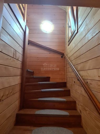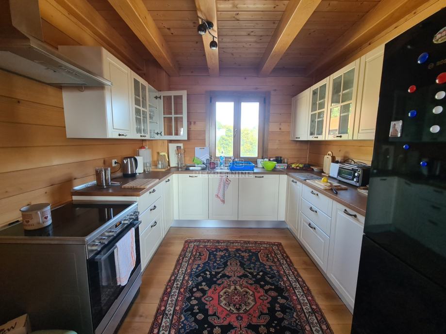 Ova iznimna i moderna drvena kuća sagrađena je 2019. godine od visokokvalitetnog lameliranog drveta jele i smreke što pruža izvanredno zdrav način stanovanja te istovremeno odličnu prirodnu toplinsku izolaciju, a također je osigurana dugovječnost i prirodna ljepota doma. Savršeno oblikovana, prostire se na tri etaže povezane unutarnjim drvenim stepeništem: