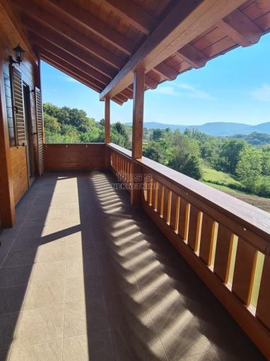 Prodaje se prekrasna nova drvena eko kuća koja pruža relaksaciju i bijeg od svakodnevice. Smještena je na brežuljku u idiličnom okruženju nedaleko Varaždinskih Toplica. Ukupan posjed je površine 5897 m2, od čega kuća zauzima 98 m2 tlocrtne površine, a garaža s nadstrešnicom 45 m2. Imanje je ograđeno visoko kvalitetnim ogradnim sustavom.